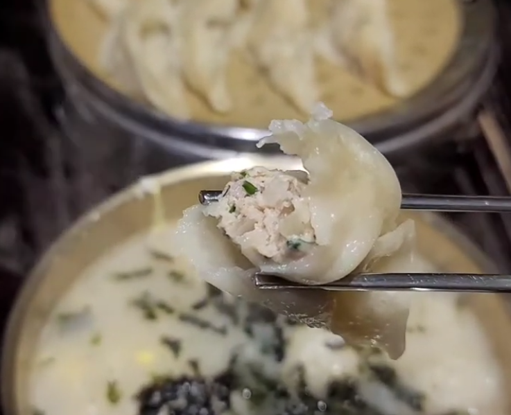 그만큼 갓 만든 만두의 묵직한 식감을 느낄 수 있어요. 만두피는 비교적 얇고 촉촉한 편이고,